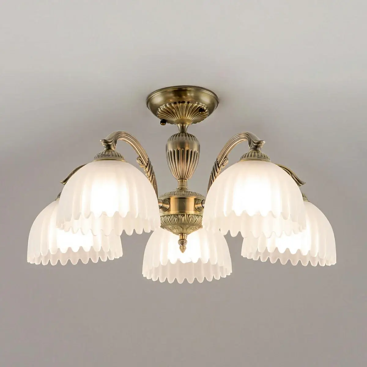 Бронзовая люстра с хрусталем — это сочетание классической эстетики и изящной роскоши. Бронза придает изделию благородный оттенок, а хрустальные подвески усиливают блеск и создают эффект многогранного света.