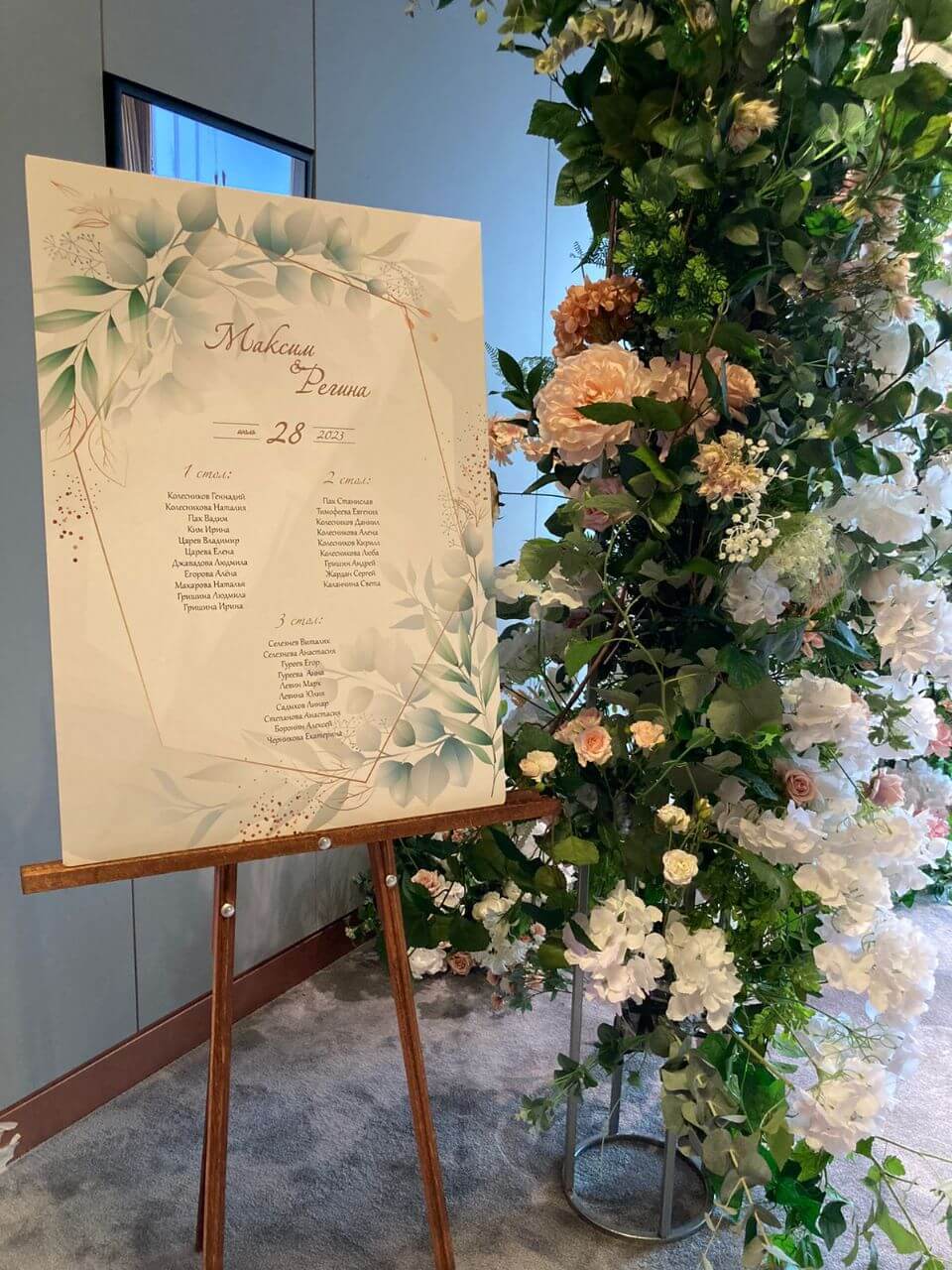Быть читабельным — крупные шрифты для имен гостей, контрастные цвета.